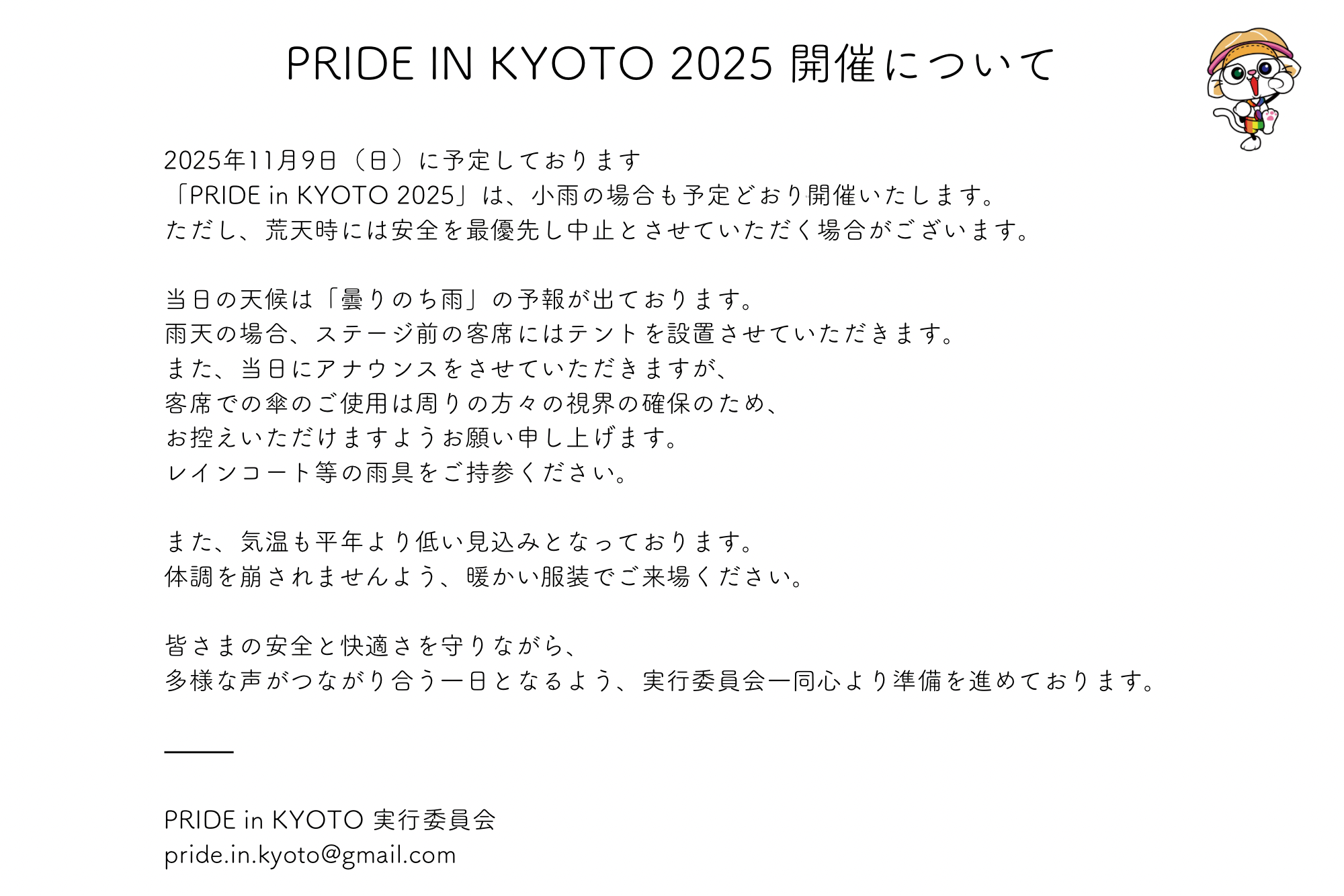 ※ご来場の皆さまやスタッフが不快だと感じる行ないがあった場合はお声がけをさせていただくことがあったり、危険だと判断した場合はご退場、ならびに警察へ通報をさせていただくことがあります。本イベントは京都府警・中京警察と連携をしております。